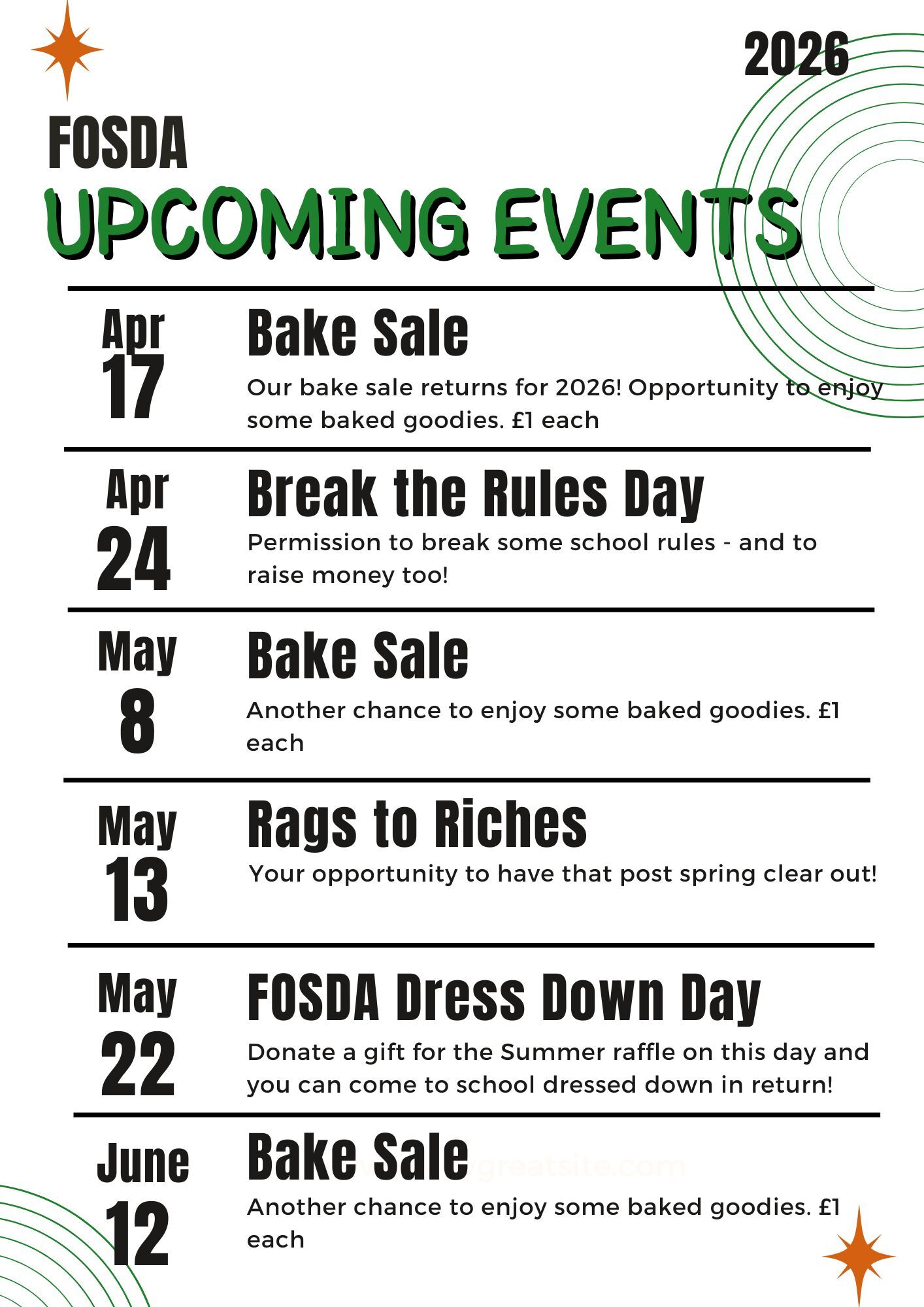 FOSDA Bake Sale from 3.00pm in the School Playground
